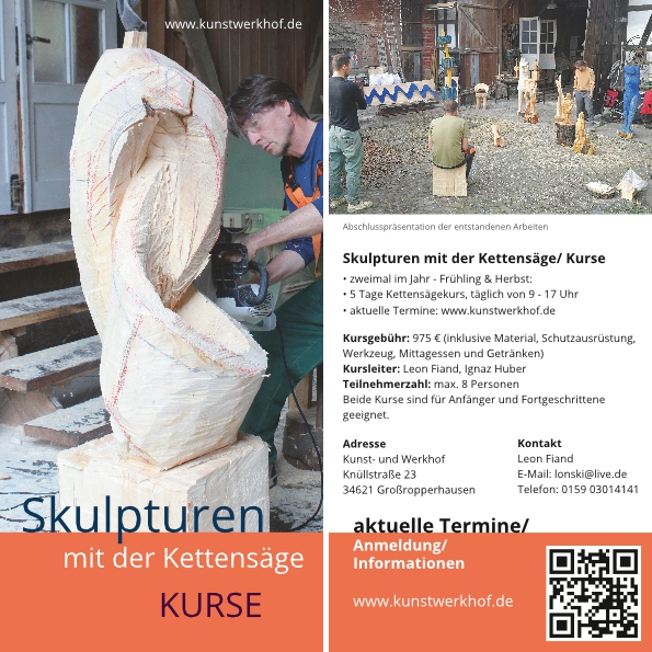 Seit 2007 bieten wir auf unserem Hof Hof jährlich drei fünftägige Kettensägekurse an.